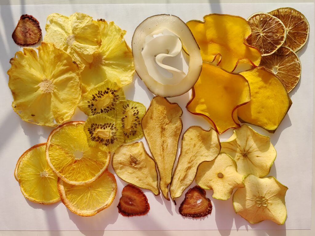 Фруктовые ломтики сушатся в специальном вентилируемом шкафу — дегидрататоре при температуре не выше 80 градусов, что позволяет сохранять витамины и микроэлементы.